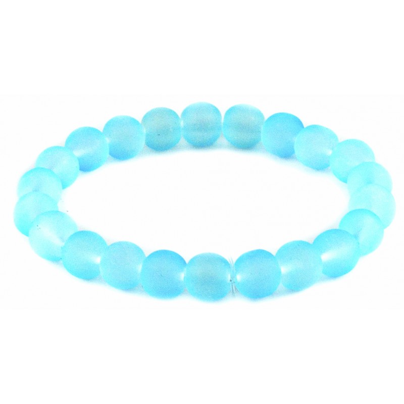Bransoletka wykonana jest z matowych koralików szklanych mrożonych nawleczonych na gumkę silikonową. Koraliki szklane mrożone to koraliki, które stały się pożądane dzięki swojemu wyglądowi przypominającemu lodowe kule. Bransoletki z tych koralików są wytrzymałe, ładnie prezentują się na dłoniach zarówno dzieci jak i dorosłych.