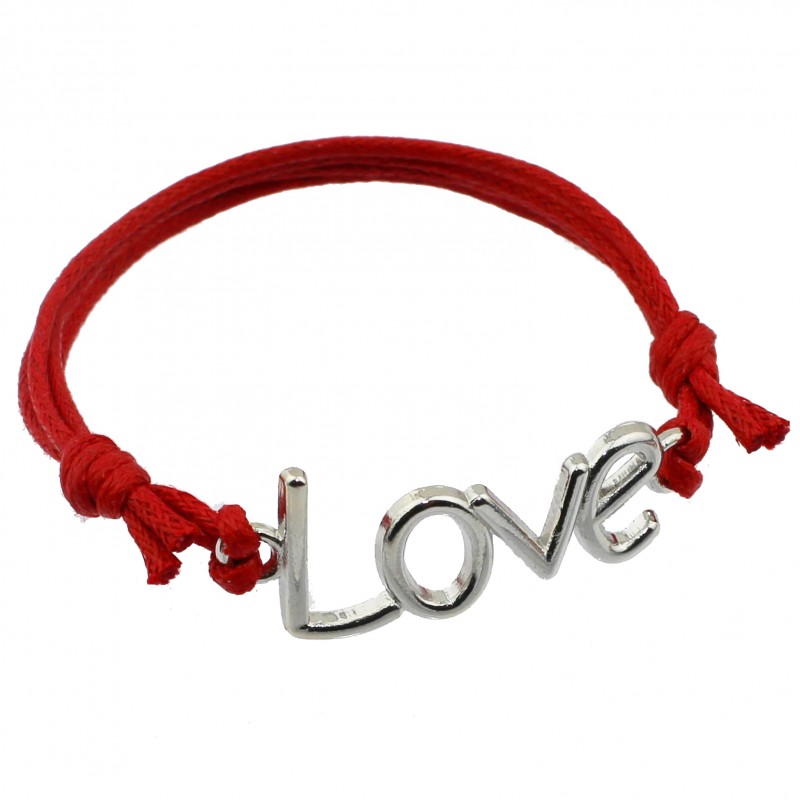 Bransoletka sznurkowa celebrytka z metalowym łącznikiem love w kolorze srebrnym.