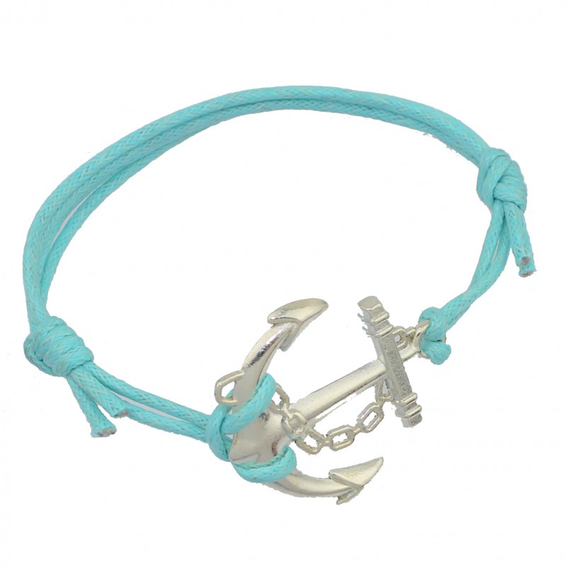 Bransoletka sznurkowa celebrytka z metalowym łącznikiem kotwica w kolorze srebrnym.