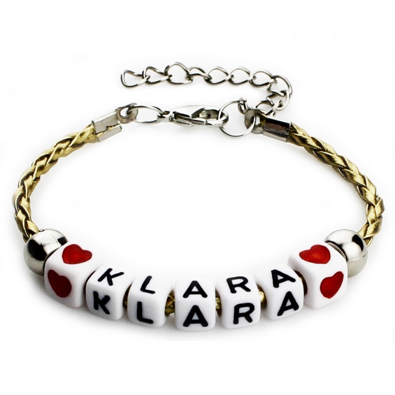 Przedmiotem sprzedaży jest bransoletka z rzemienia plecionego w 19 różnych kolorach z literkami różnej konfiguracji (nazwa, napis, imię, data)