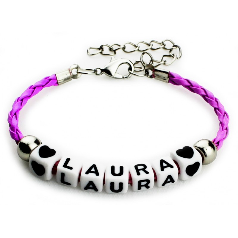 Przedmiotem sprzedaży jest bransoletka z rzemienia plecionego w 19 różnych kolorach z literkami różnej konfiguracji (nazwa, napis, imię, data)
