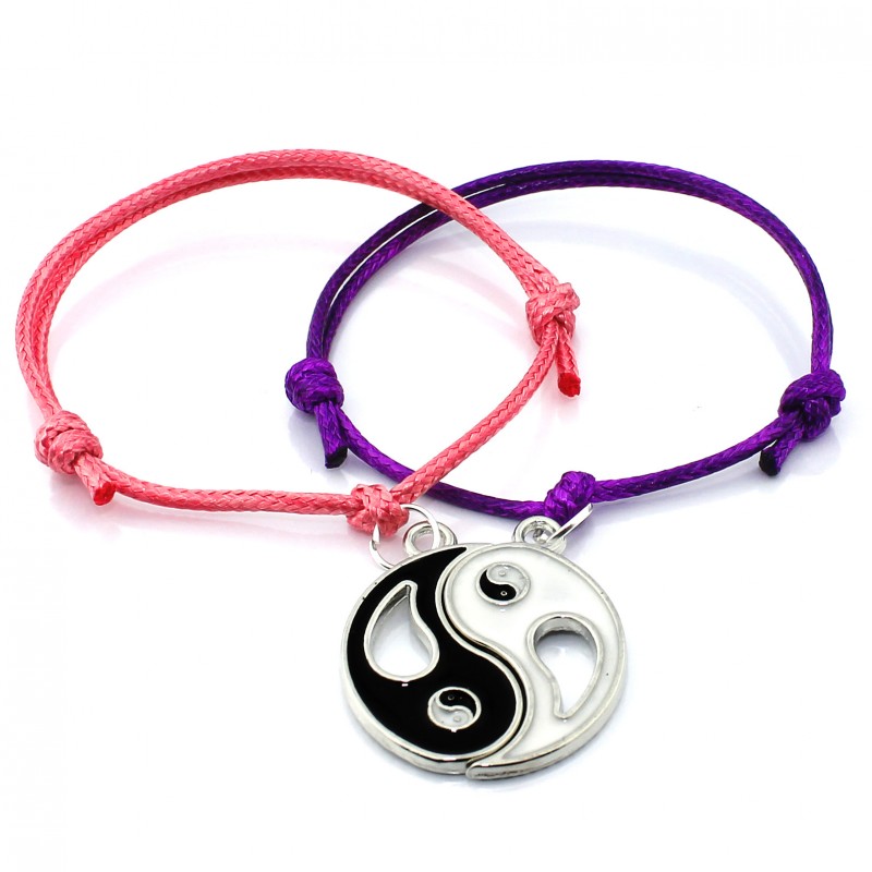 Komplet bransoletek sznurkowych z uzupełniającymi się zawieszkami w postaci okręgu Yin Yang, w 19 kolorach sznurka do wyboru.