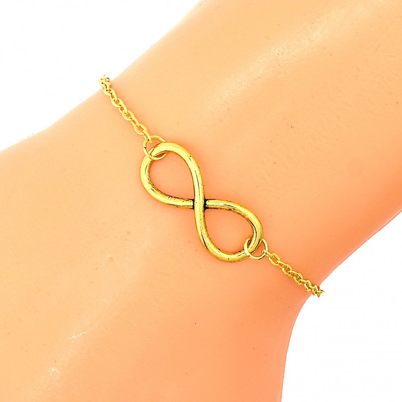 Bransoletka z łańcuszka z łącznikiem nieskończoność na rękę.