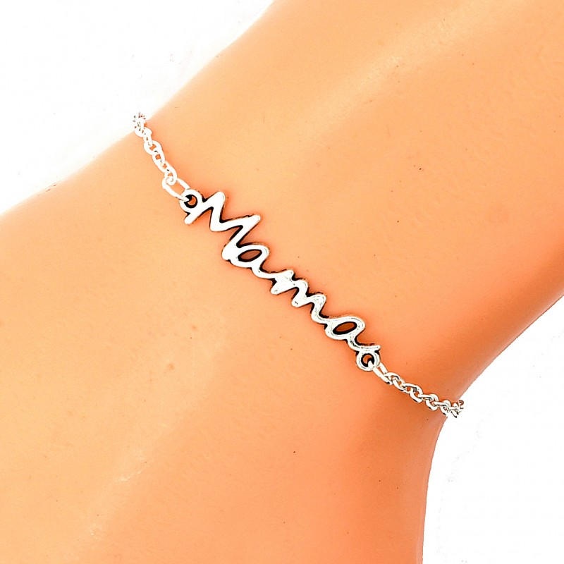 Bransoletka z łańcuszka z łącznikiem "Mama" na rękę.