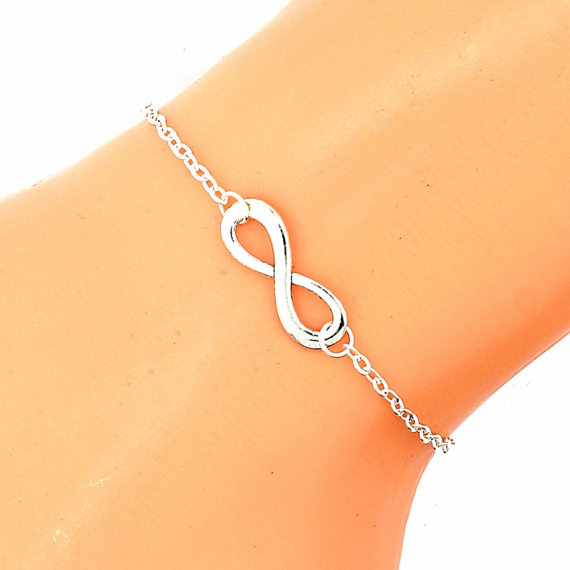 Bransoletka z łańcuszka z łącznikiem w kształcie nieskończoności na rękę.