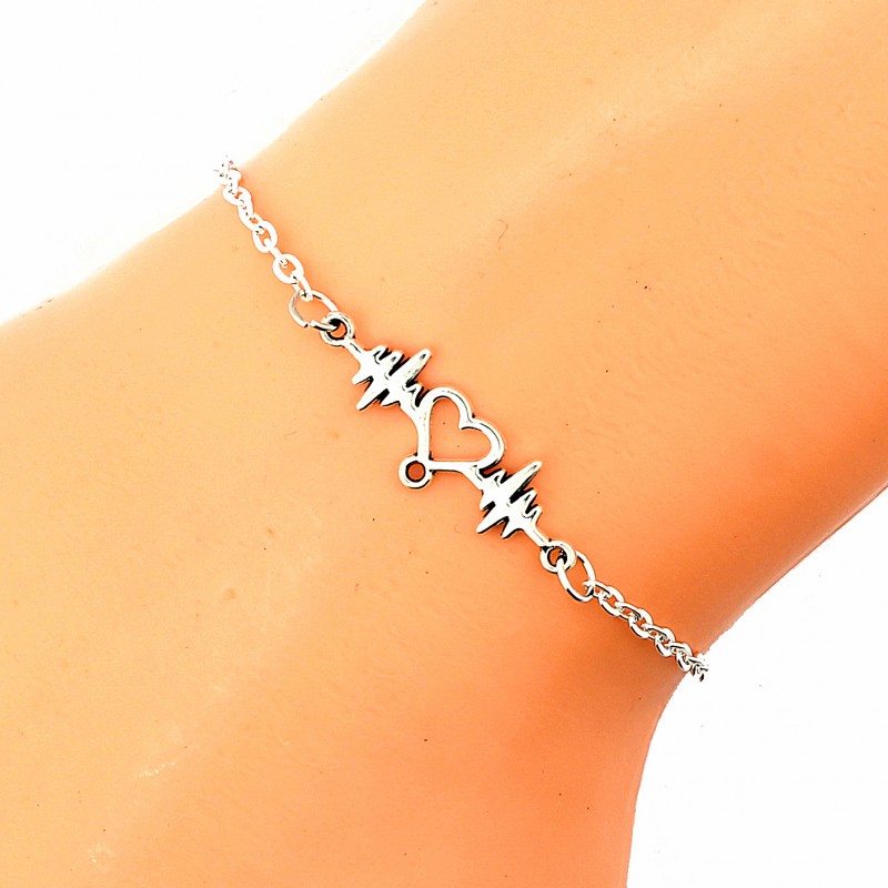 Bransoletka z łańcuszka z łącznikiem w kształcie EKG z sercem na rękę.