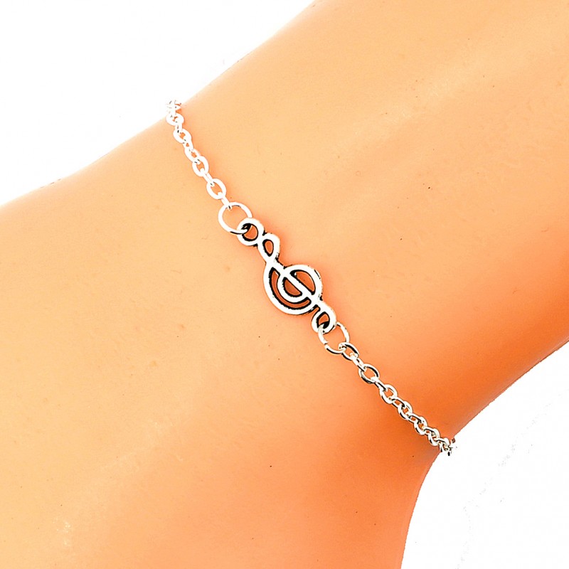 Bransoletka z łańcuszka z łącznikiem w kształcie klucza wiolinowego na rękę.
