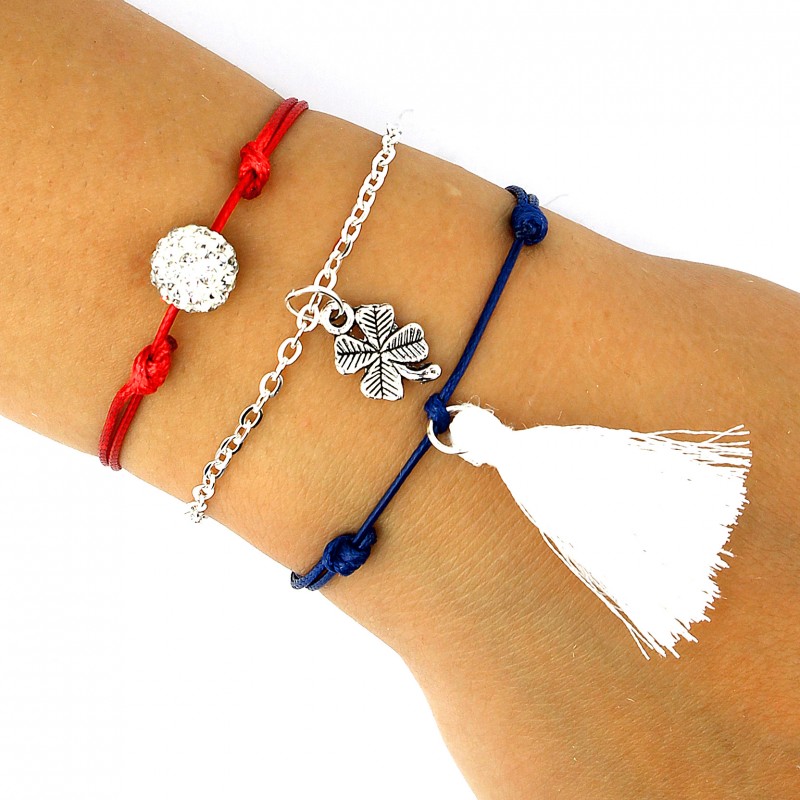 Kolory bransoletek: granatowy, czerwony, biały, srebrny