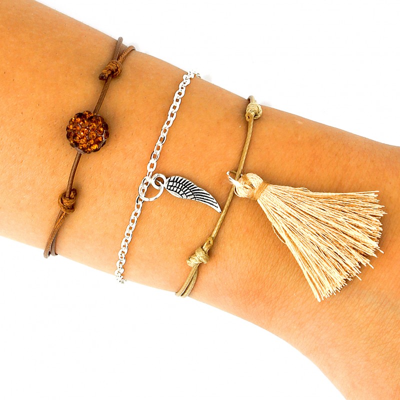 Kolory bransoletek: beżowy, brązowy, srebrny