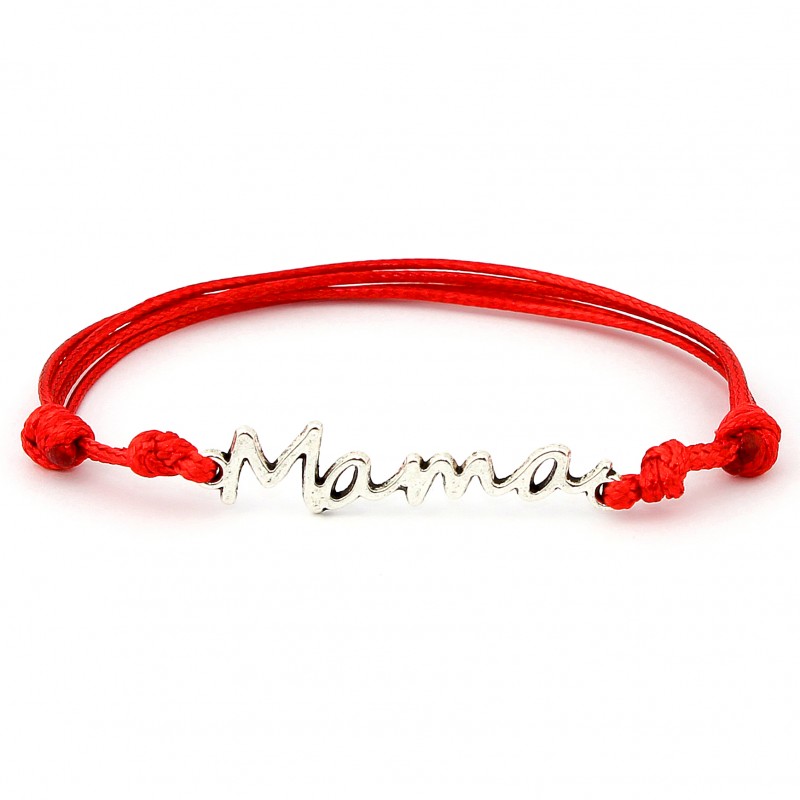 Przedmiotem sprzedaży jest bransoletka sznurkowa celebrytka z metalowym łącznikiem Mama w kolorze srebrnym.