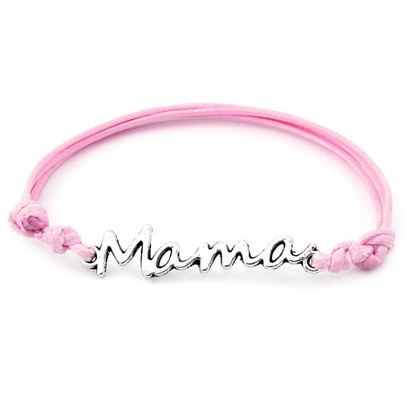 Przedmiotem sprzedaży jest bransoletka sznurkowa celebrytka z metalowym łącznikiem Mama w kolorze srebrnym.