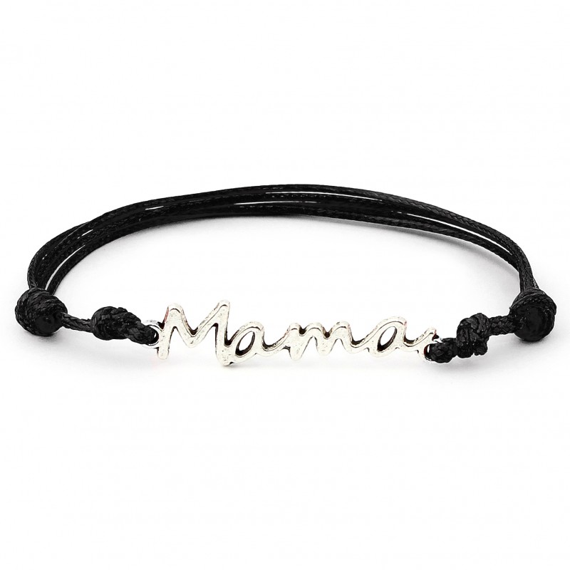 Przedmiotem sprzedaży jest bransoletka sznurkowa celebrytka z metalowym łącznikiem Mama w kolorze srebrnym.