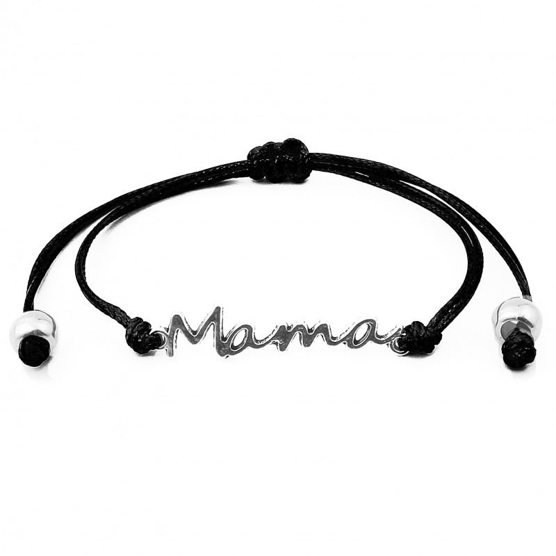 Przedmiotem sprzedaży jest bransoletka sznurkowa celebrytka z metalowym łącznikiem Mama w kolorze srebrnym.
