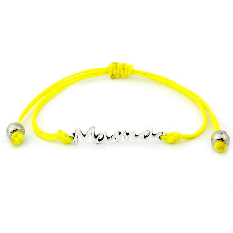 Przedmiotem sprzedaży jest bransoletka sznurkowa celebrytka z metalowym łącznikiem Mama w kolorze srebrnym.