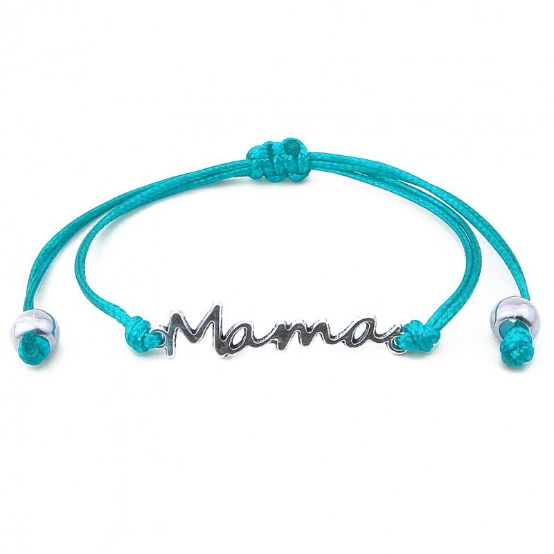 Przedmiotem sprzedaży jest bransoletka sznurkowa celebrytka z metalowym łącznikiem Mama w kolorze srebrnym.