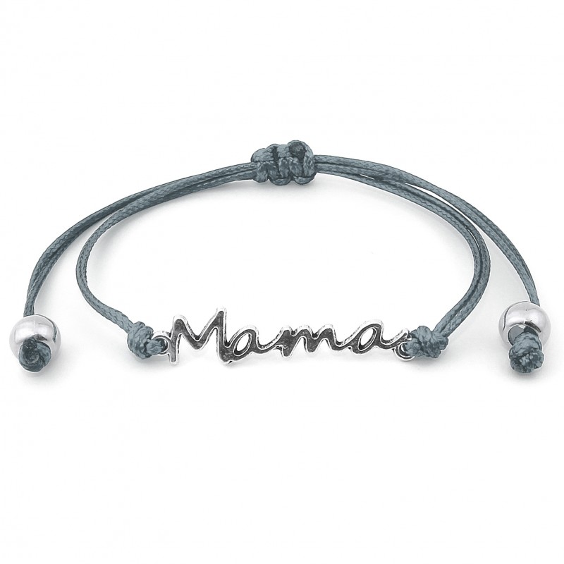 Przedmiotem sprzedaży jest bransoletka sznurkowa celebrytka z metalowym łącznikiem Mama w kolorze srebrnym.