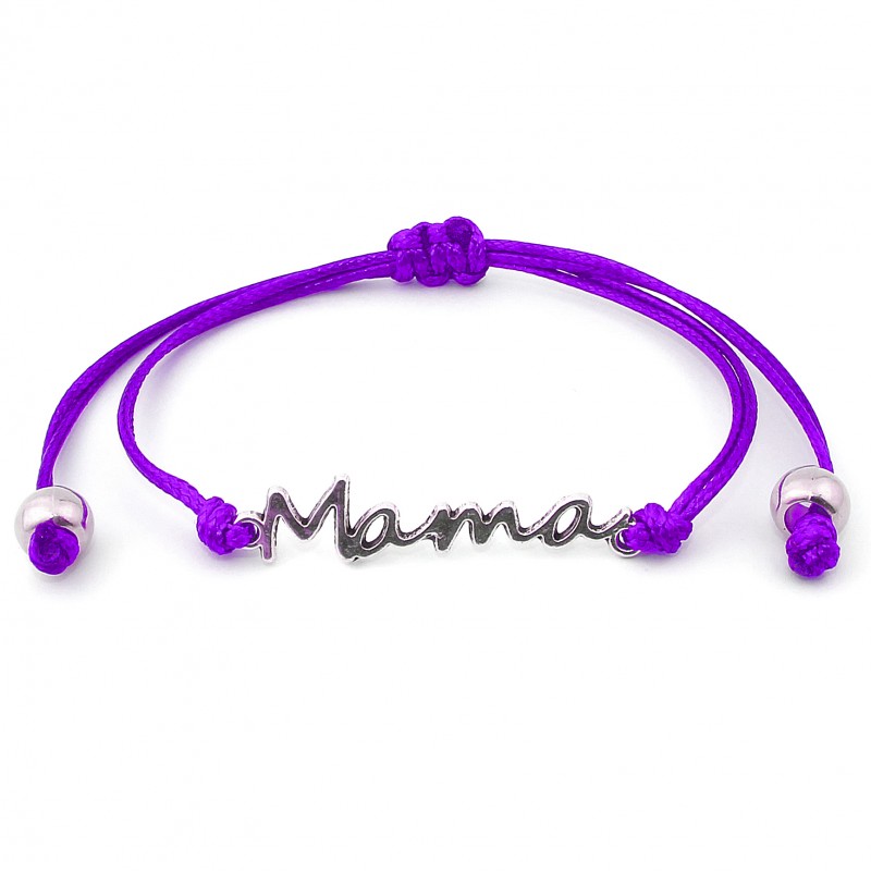 Przedmiotem sprzedaży jest bransoletka sznurkowa celebrytka z metalowym łącznikiem Mama w kolorze srebrnym.