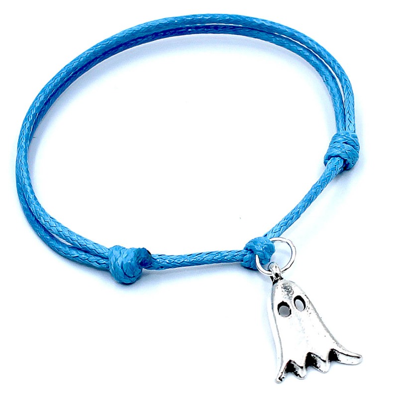 Przedmiotem sprzedaży jest bransoletka sznurkowa w 19 różnych kolorach sznurka do wyboru, z zawieszką metalową duchem.