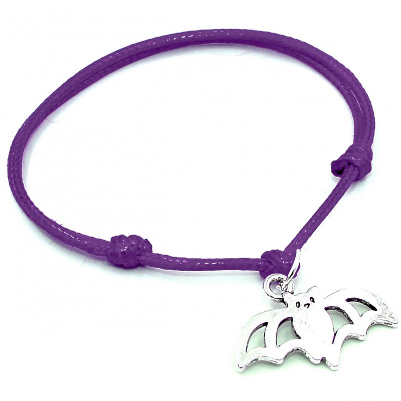 Przedmiotem sprzedaży jest bransoletka sznurkowa w 19 różnych kolorach sznurka do wyboru, z zawieszką metalową nietoperzem.
