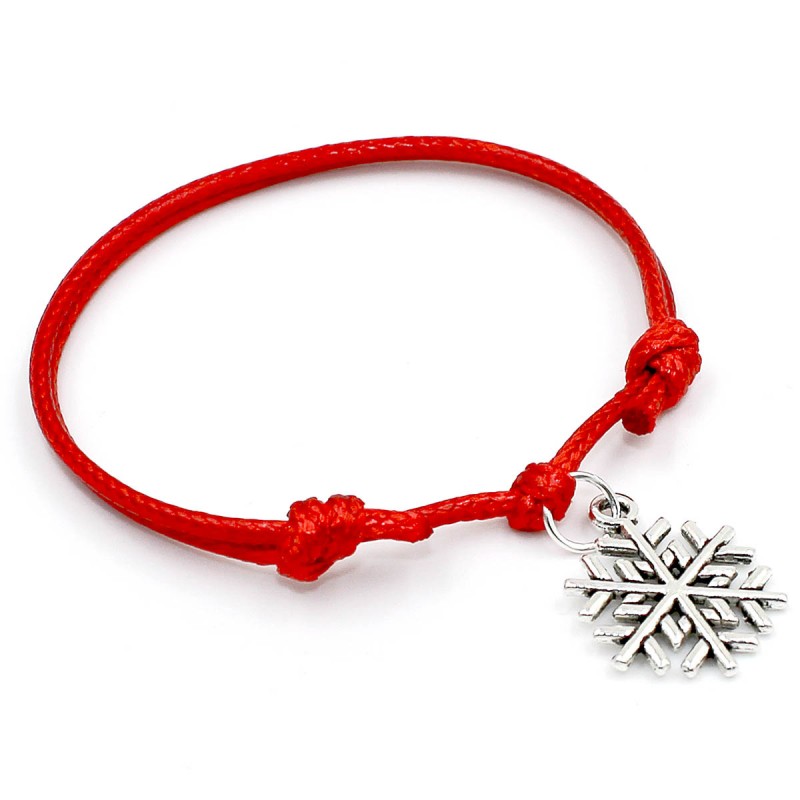 Przedmiotem sprzedaży jest bransoletka sznurkowa w 19 różnych kolorach sznurka do wyboru, z zawieszką metalową śnieżynką.