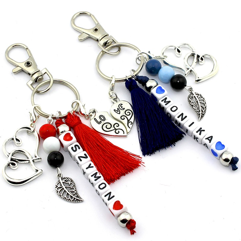 Literki wykonane są z akrylu. Kółko breloka wykonane jest z metalu. Zawieszki wykonane są z metalu.