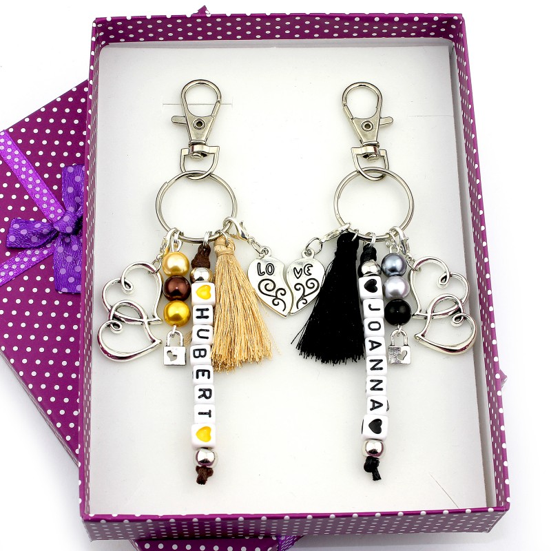 Brelok dla par komplet pudełko Walentynki złoty/czarny
