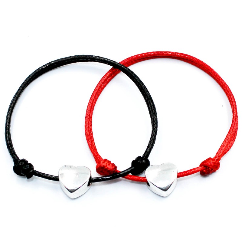 Przedmiotem sprzedaży jest komplet bransoletek sznurkowych w 21 różnych kolorach sznurka do wyboru, z ozdobnym sercem.