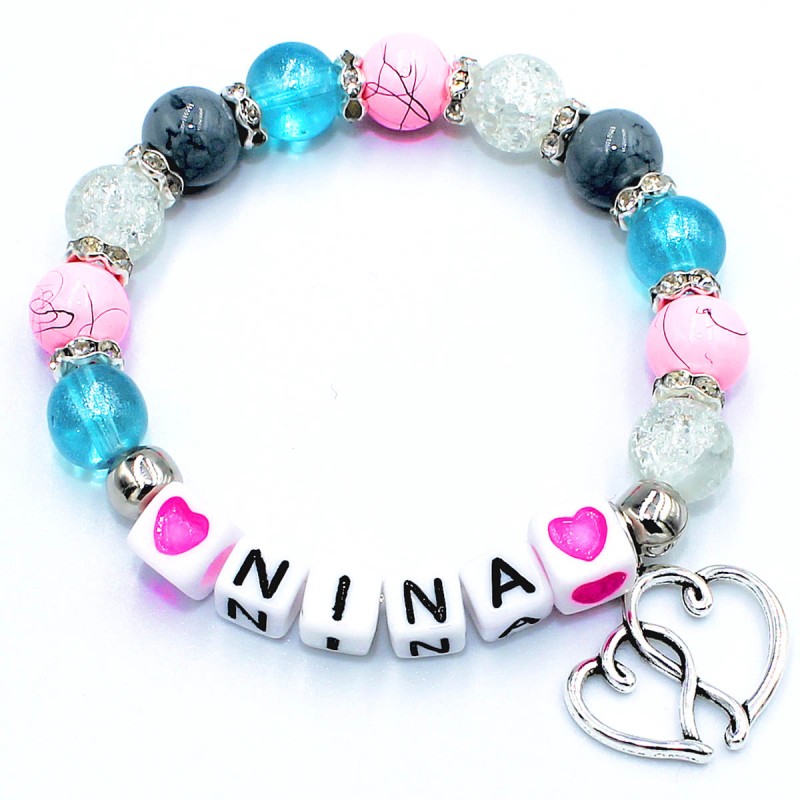 Przedmiotem sprzedaży jest bransoletka z koralików szklanych z dowolnym napisem oraz jedną zawieszką do wyboru gratis.