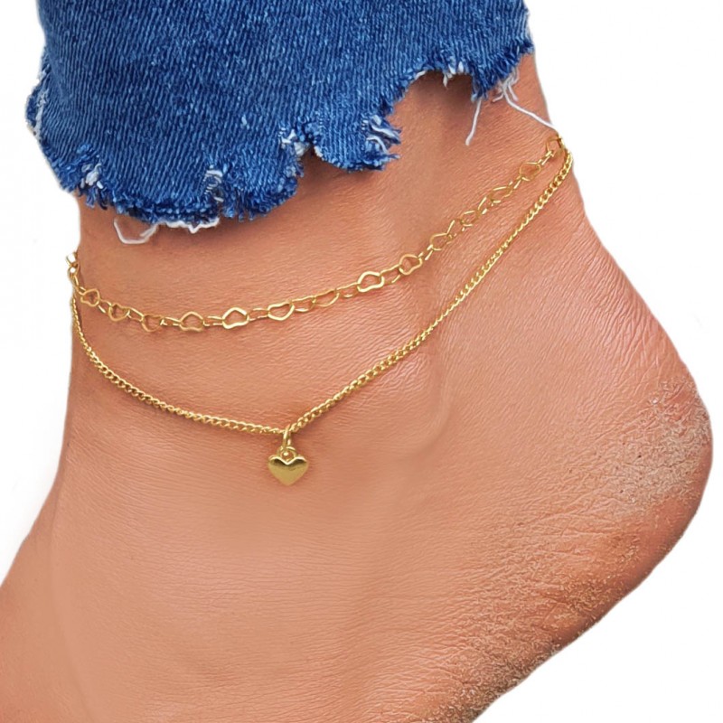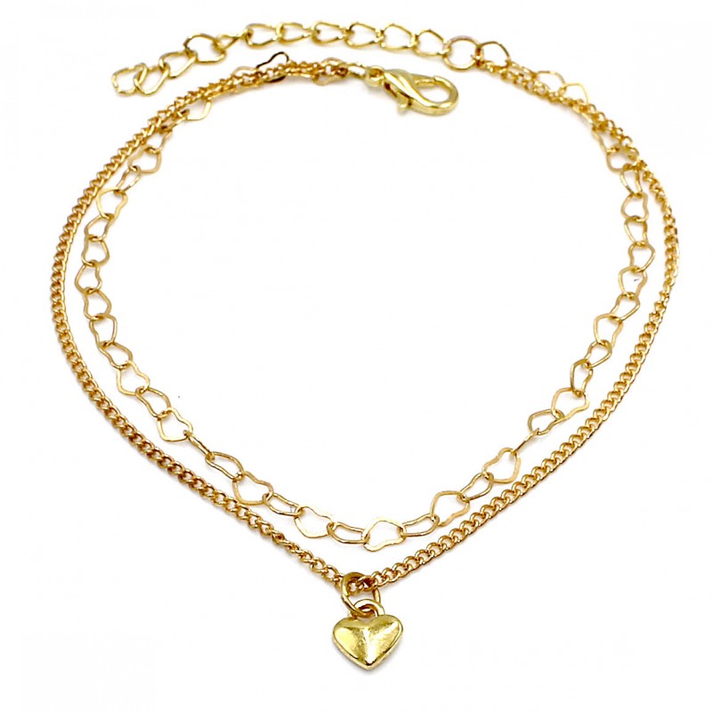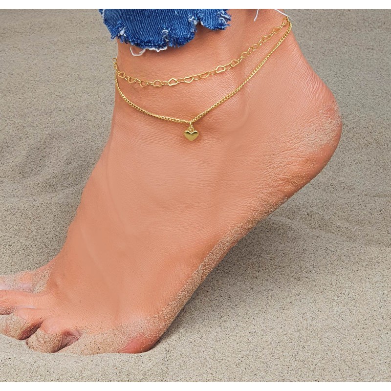 Delikatna bransoletka na nogę/kostkę w kolorze złotym z zawieszką serce.