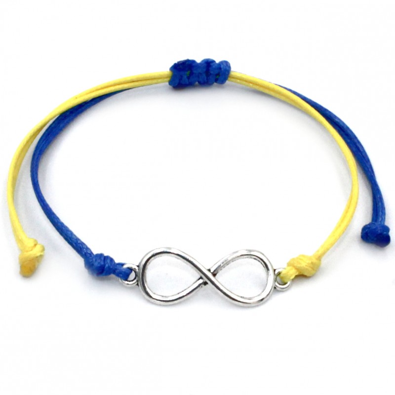 Bransoletka sznurkowa regulowana z łącznikiem, w kolorze niebiesko-żółtym