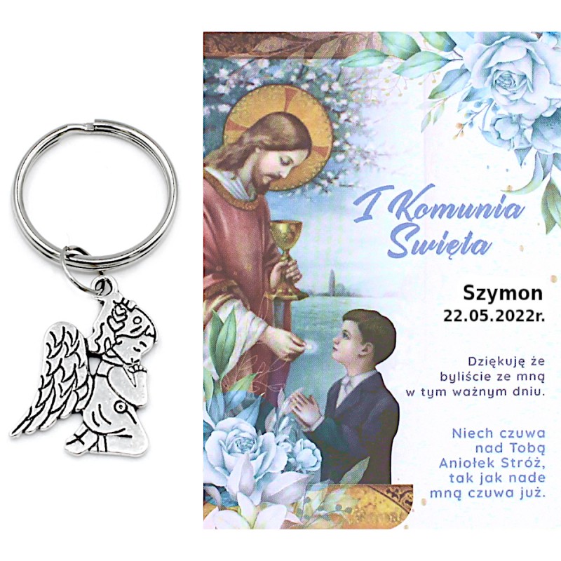 Podziękowanie na Komunię Anioł imię data Chłopiec