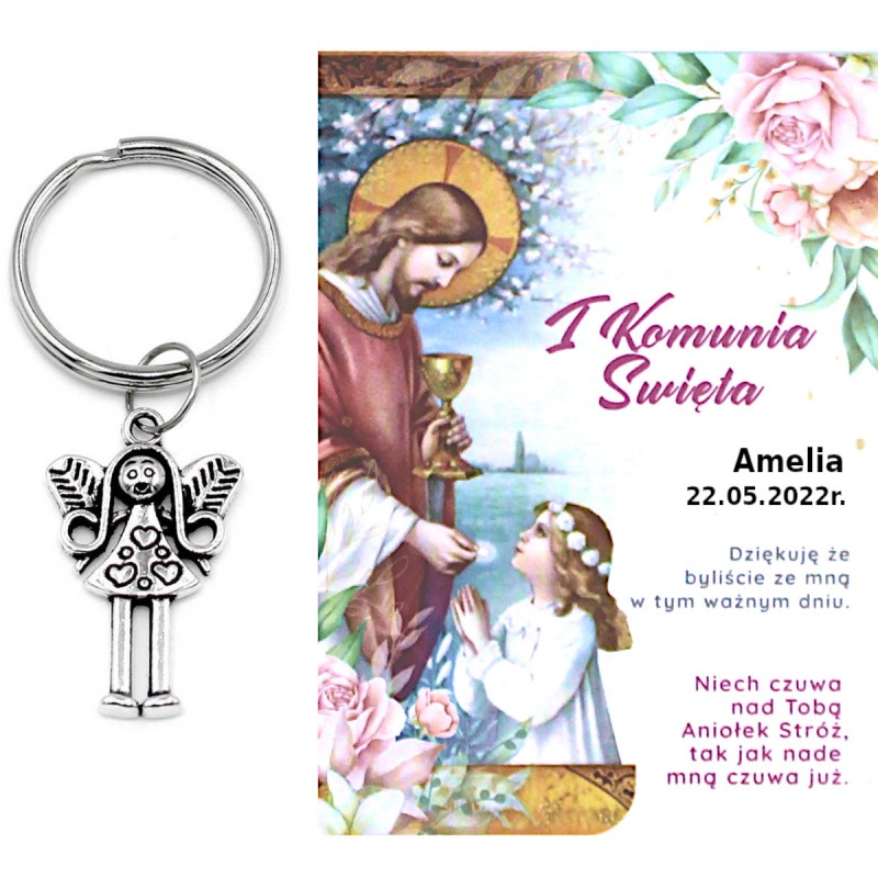 Podziękowanie na Komunię brelok Anioł dla Dziewczynki.