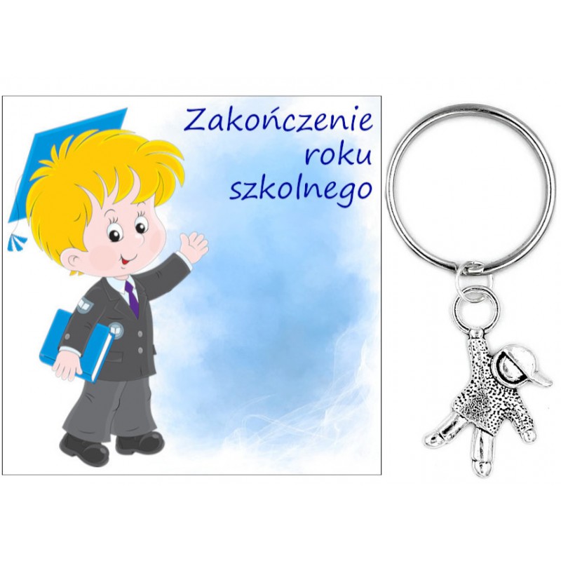 Brelok zapakowany jest w celofan z ozdobną karteczką na zakończenie roku szkolnego.