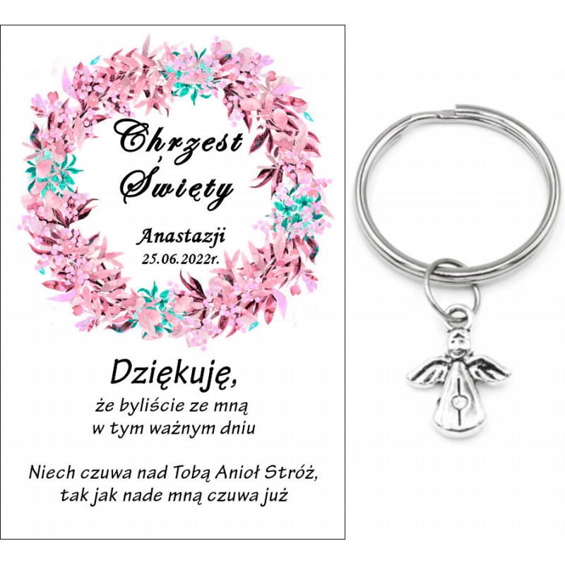 Podziękowanie Aniołek Chrzest Brelok Pamiątka