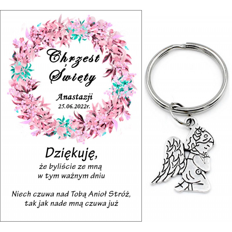 Podziękowanie Brelok Dla Gości Anioł Aniołek Chrzest