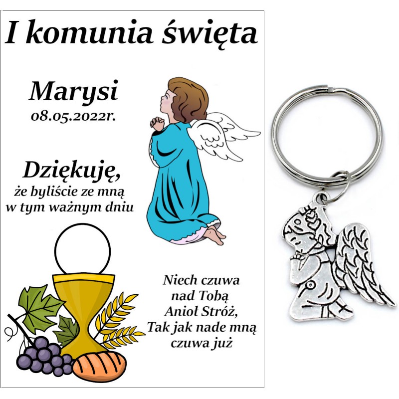 Podziękowanie Brelok Dla Gości Anioł Komunia Celofan