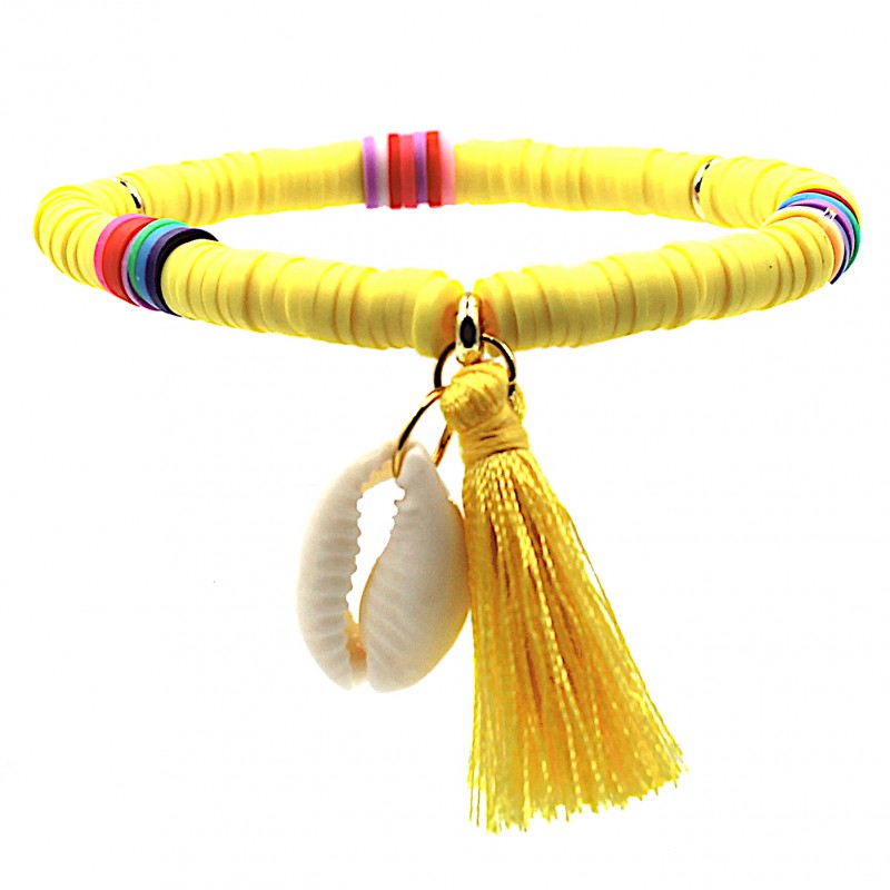 Materiał: muszla naturalna, koraliki katsuki (z modeliny), akryl, gumka silikonowa