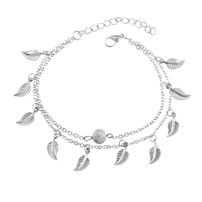Bransoletka na nogę / kostkę w kolorze złotym z zawieszkami w kształcie listków.