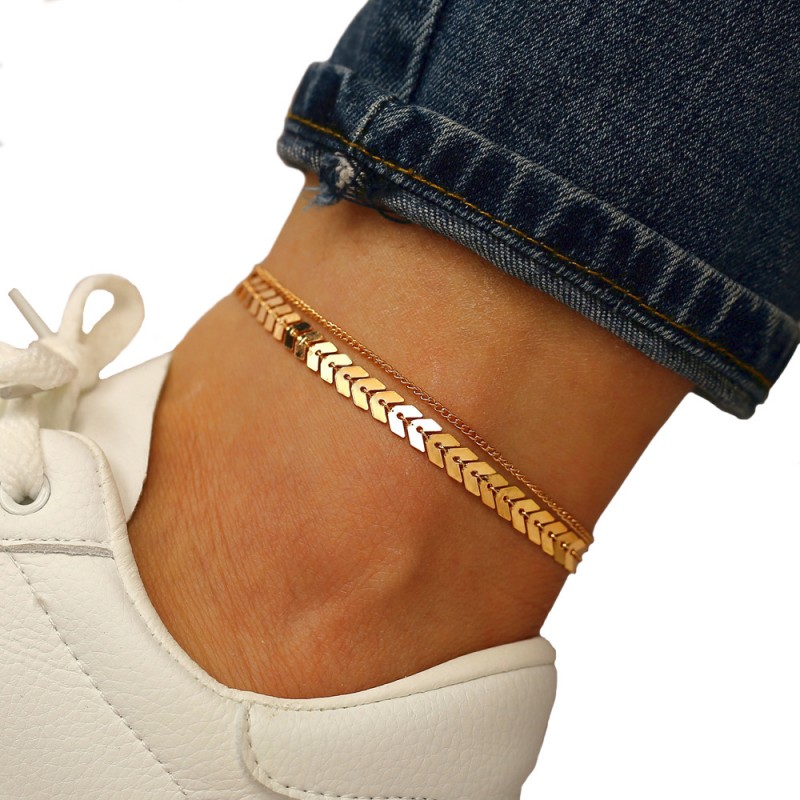 Podwójna bransoletka na nogę / kostkę w kolorze złotym.