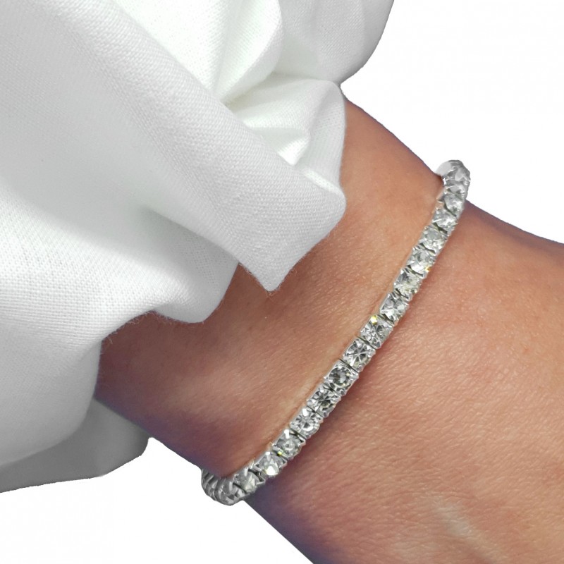 To elegancka bransoletka z cyrkoniami w stylu glamour. Najlepiej sprawdzi się przy wieczorowej kreacji, dodając jej blasku. Dla tego typu bransoletek znajdzie się również miejsce w kreacji casualowej. W połączeniu z innymi dodatkami będzie prezentować się niezwykle oryginalnie.
