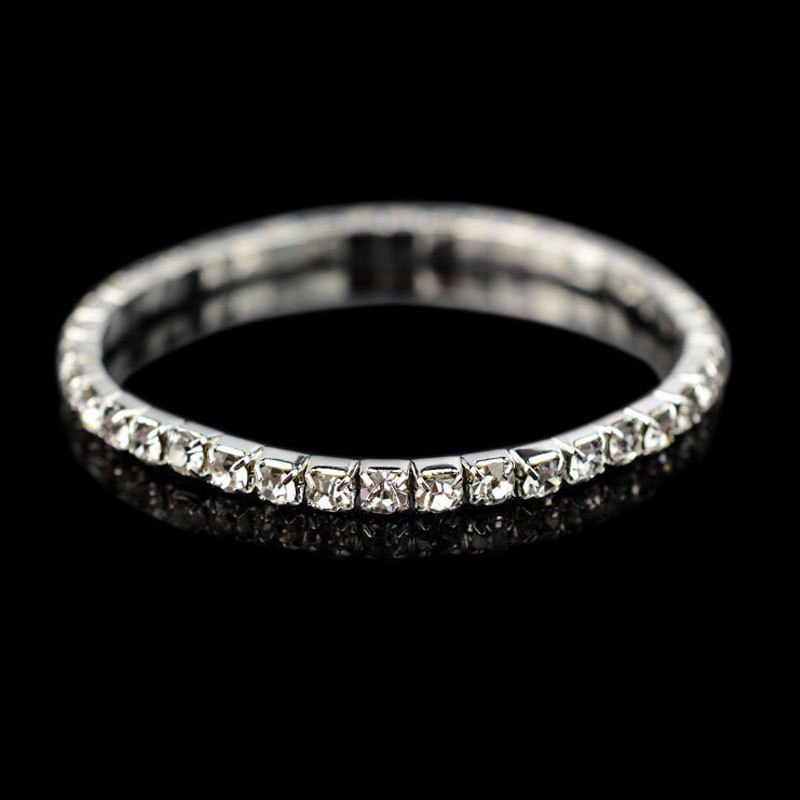 Bransoletka na rękę w kolorze srebrnym z kryształkami na gumce silikonowej.