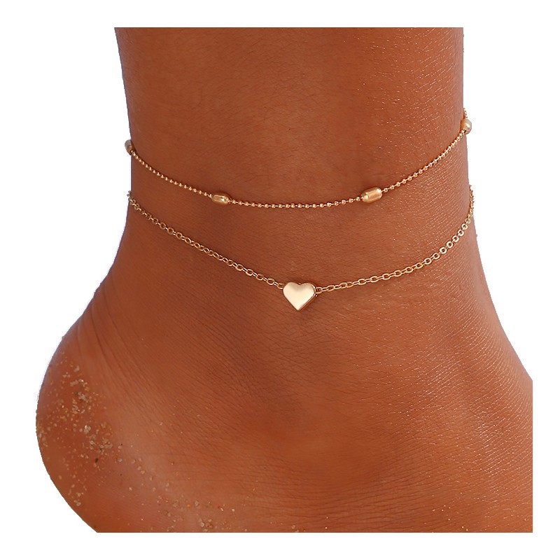 Podwójna bransoletka na nogę / kostkę w kolorze złotym z serduszkiem.
