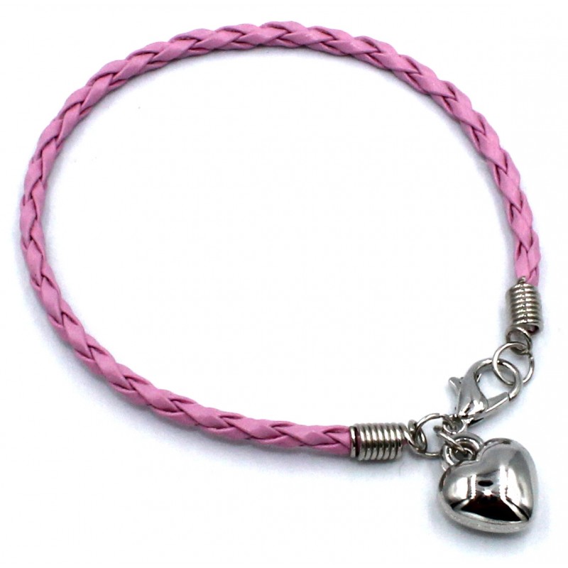 Bransoletka z rzemienia plecionego z zawieszką serduszkiem.