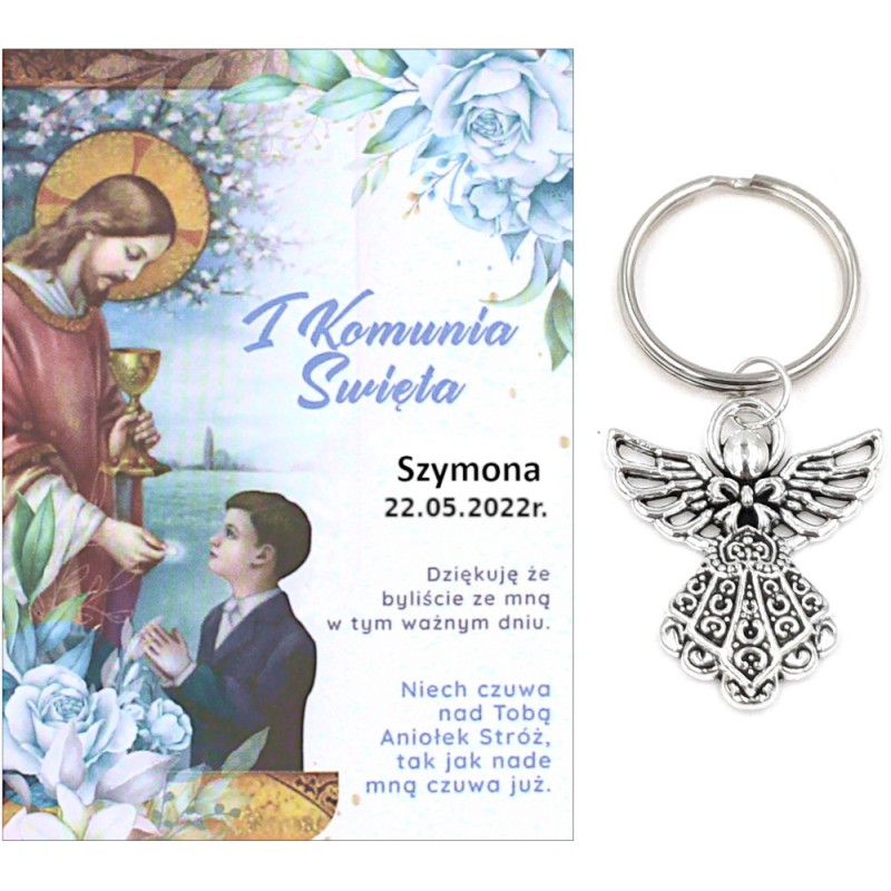 A7 Podziękowanie dla Gości Breloczek Aniołek Imię Data Chłopiec Komunia