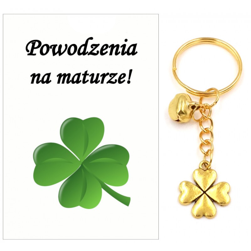 Brelok dla Maturzysty Koniczyna Złota na Szczęście Matura