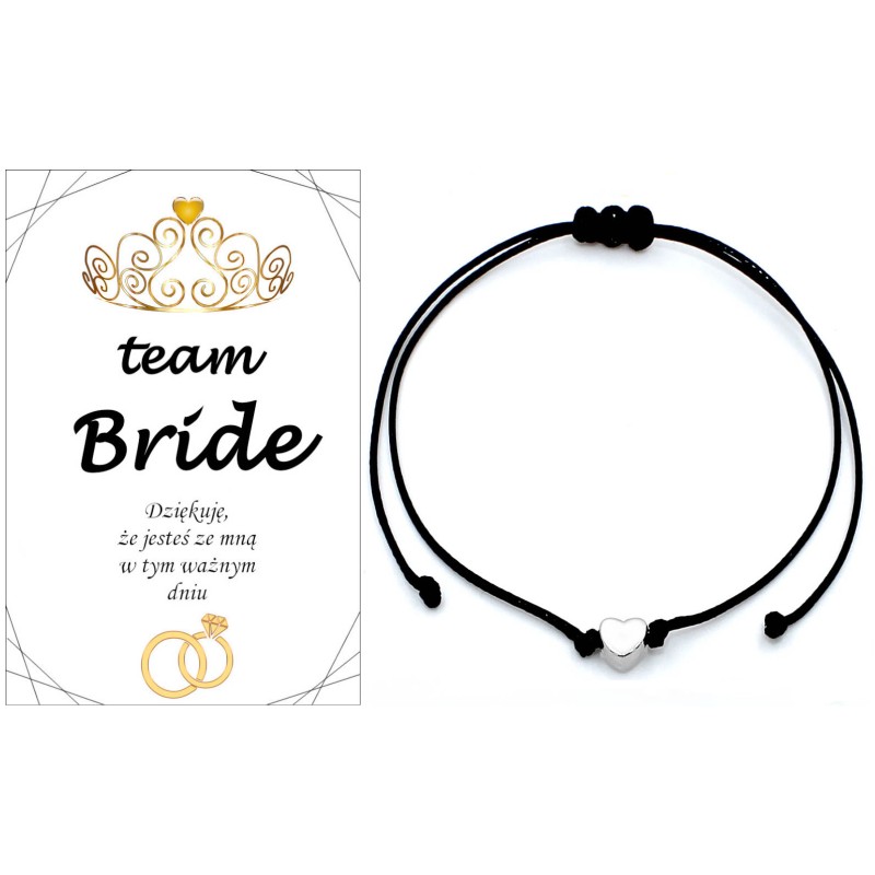 BRANSOLETKA NA WIECZÓR PANIEŃSKI SERCE PODZIĘKOWANIE CZARNA