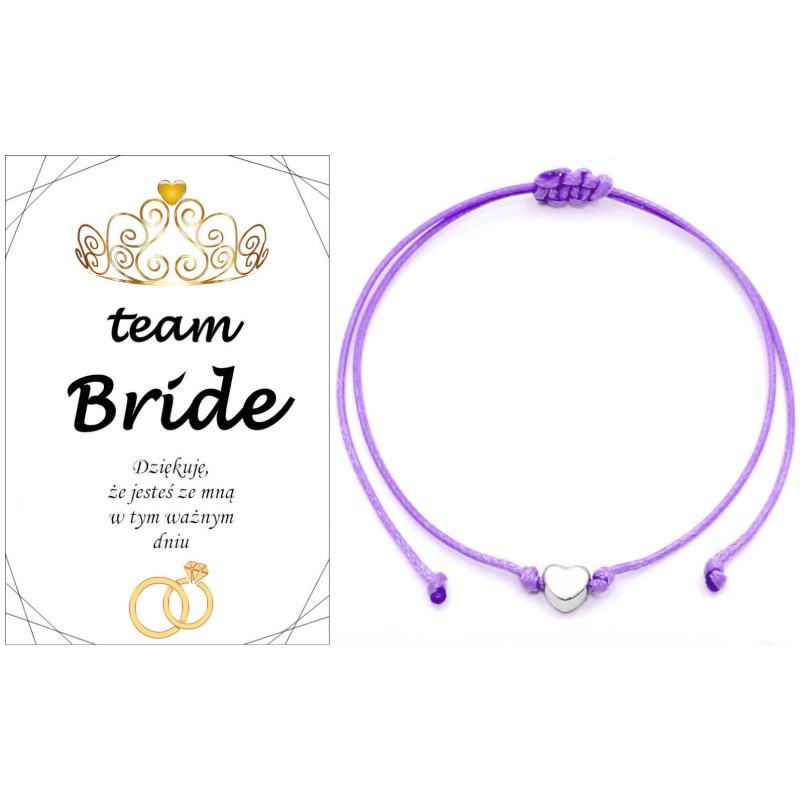 BRANSOLETKA NA WIECZÓR PANIEŃSKI SERCE PODZIĘKOWANIE FIOLET