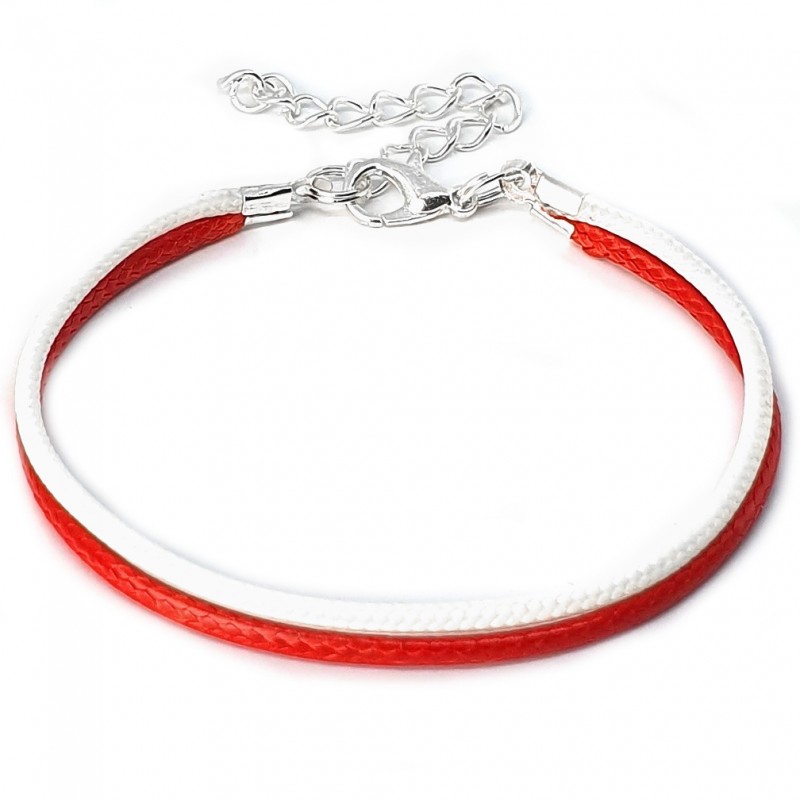 Przedmiotem sprzedaży jest bransoletka sznurkowa biało-czerwona