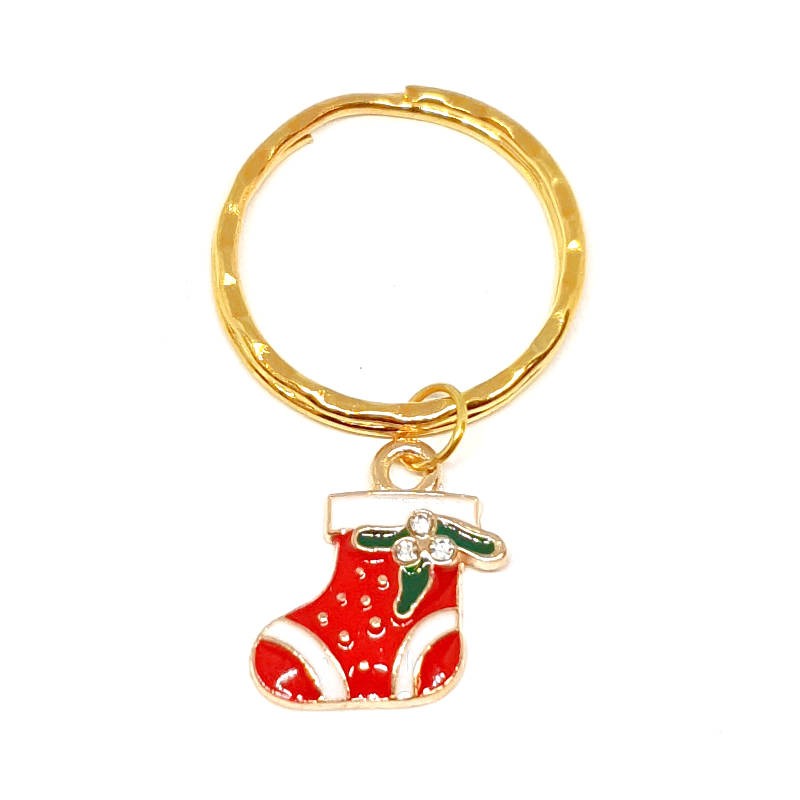 Przedmiotem sprzedaży jest breloczek skarpeta świąteczna. Może być on formą podziękowania lub upominku.