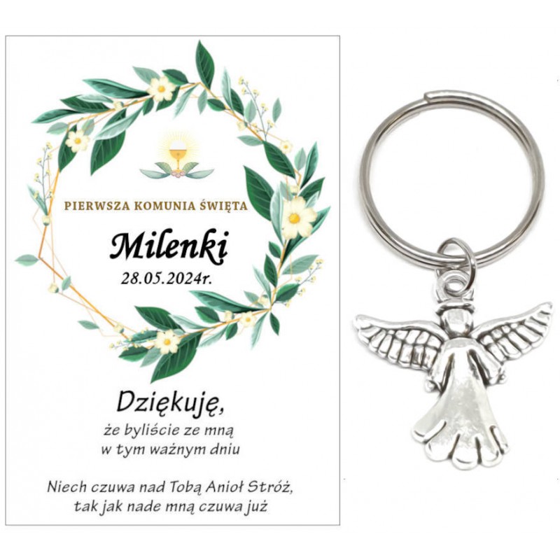 Podziękowanie dla gości brelok ANIOŁEK KOMUNIA PERSONALIZACJA PAMIĄTKA A24